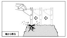 ※同じ箇所で30秒〜1分間打撃しても割れない場合は被破砕物に対してのチゼルの位置を変えてください。